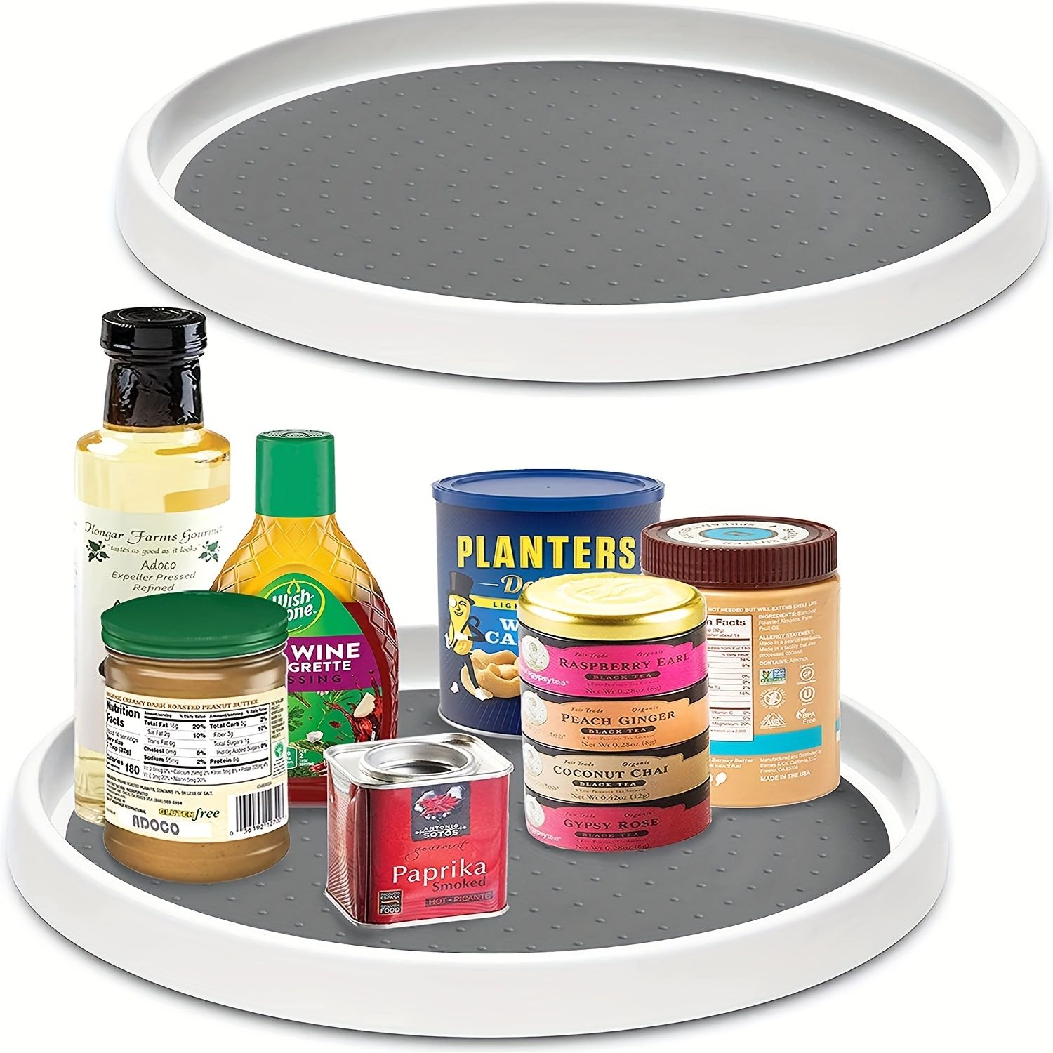 Rotates in a circle for easy access to condiments; spices; boxed food; bagged food; cans; cooking supplies; and ingredients. Also can help organize nail polish; cleaning supplies; hair supplies; bottles; soaps; and other small items . Perfect for your kitchen table; pantry; shelf; outdoor dining table; or countertop. Also great for your bathroom; office; cabinet; or vanity; Keep your kitchen cabinet or pantry neatly organized with these functional spice organizers.