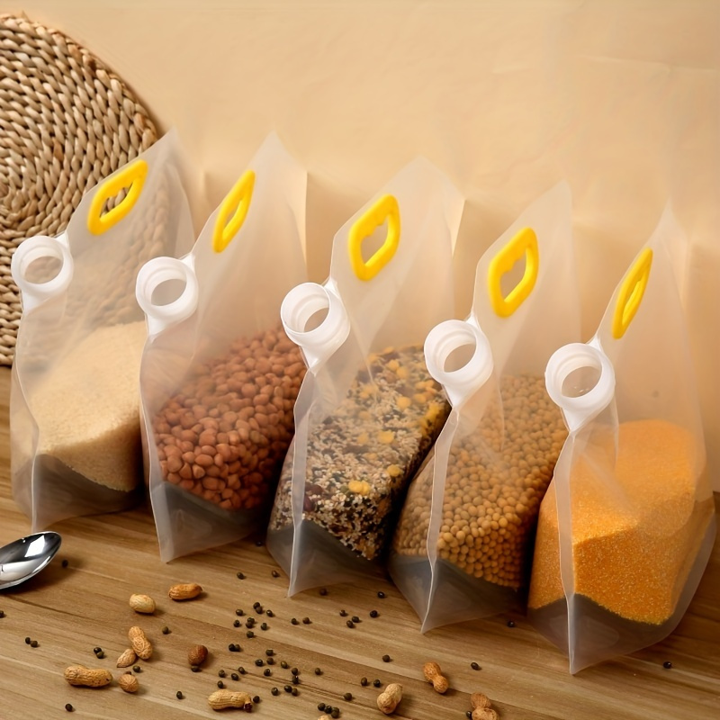 Home > 5pcs Food Storage Bags; Portable Folding Sealed Food Storage Containers With Lids; Clear Reusable Large Capacity Storage Bags; Moisture-proof Sealed B