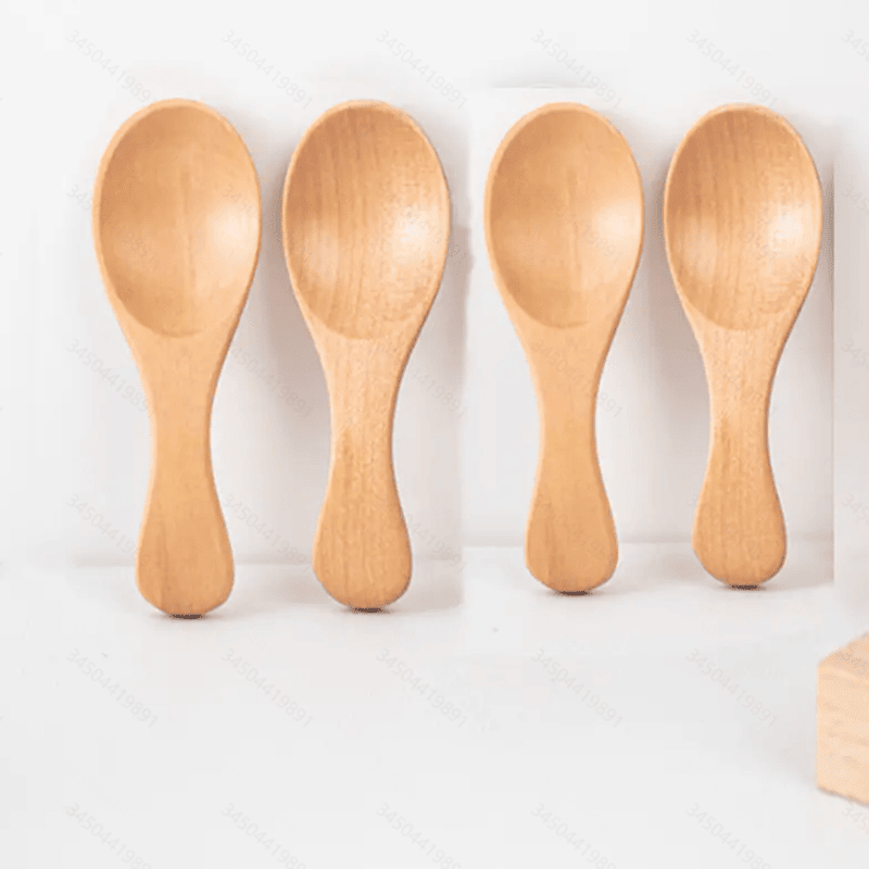 4Pcs Mini Wooden Kitchen Spoons Small Short Handled Salt Spoon Sugar Spice Scoop Condiment Spoon Tea Coffee Scoop; Wood Kids Spoon Baby Feeding Tableware Features: Small wooden spoon made of natural schima superba wood. Brief style; simple & subtle elegance. Perfect for scooping sugar; salt; spice; coffee; tea and various types of condiments. Short handle & mini size makes it a good baby feeding/training spoon. Product Specification: Product Name: 4Pcs Mini Wooden Spoon Set