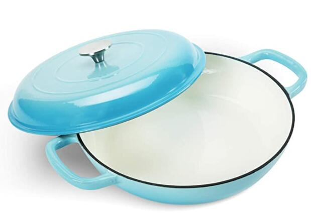 2.Porcelain Enamel Coating: The Cast Iron Braiser features smooth porcelain enamel coating,provides a great heat conductor. And it proven to effectively distribute & retain heat for an even & consistent temperature throughout the entire pot. Excellent for braise, bake, broil, saute, simmer, roast or a